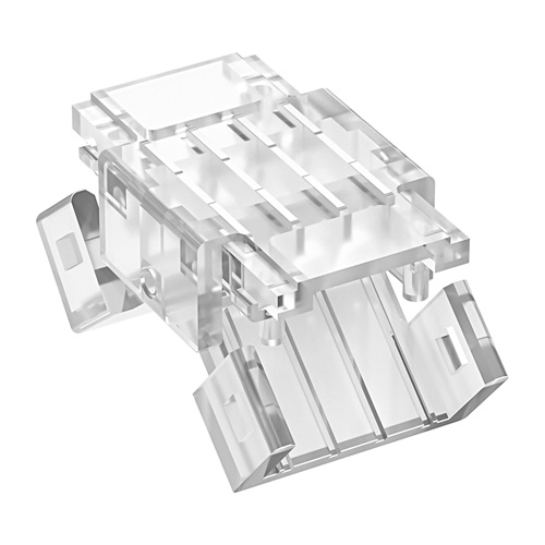 Toolless strip-strip connector voor 4-draads IP20 ledstrips van 10mm breed. Max. 48V 5,5A, geschikt voor kabelsectie vanaf 0,32mm² en max buitendiameter<2mm.
